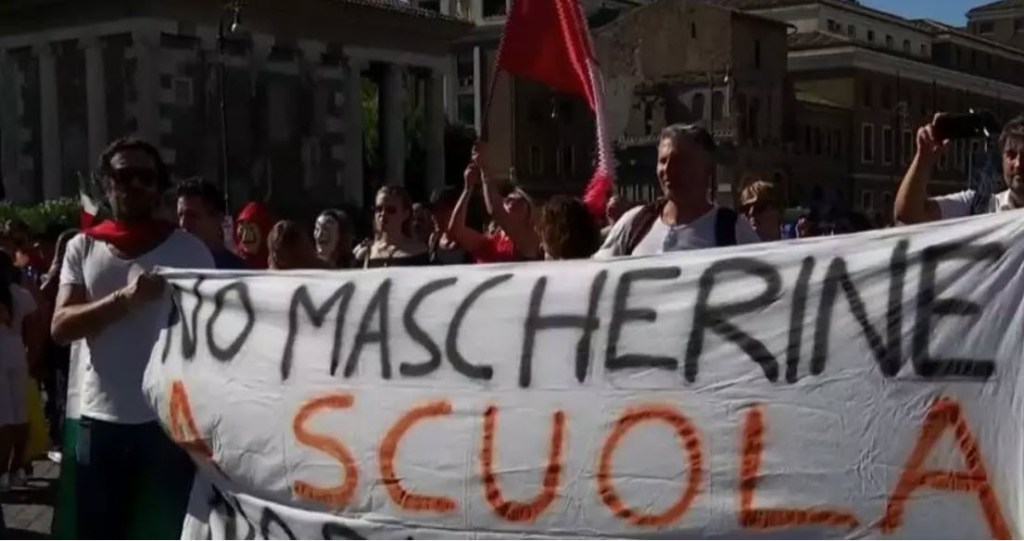 อิตาลี 6 ก.ย. – นักรณรงค์จากทั่วประเทศอิตาลีกว่า 1,000 คน รวมตัวประท้วงมาตรการป้องกันโควิด-19 ของรัฐบาล ปฏิเสธข้อบังคับให้สวมหน้ากากอนามัย อ้างเป็นการลิดรอนเสรีภาพส่วนบุคคล
