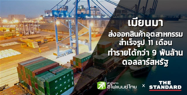 วานนี้ (24 กันยายน) กระทรวงพาณิชย์ของเมียนมาเปิดเผยว่า เมียนมาทำรายได้จากการส่งออกสินค้าอุตสาหกรรมสำเร็จรูปมากกว่า 9.41 พันล้านดอลลาร์สหรัฐ (ราว 2.9 แสนล้านบาท) ในช่วง 11 เดือนของปีงบประมาณ 2019-2020 ซึ่งเริ่มขึ้นตั้งแต่เดือนตุลาคม 2019