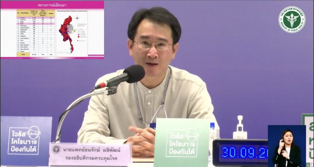 “พื้นที่มีผู้ป่วยของเมียนมาจะอยู่ในภาคตะวันตกเกือบทั้งหมด และมีบางรัฐมีส่วนติดกับชายแดนไทย โดยรัฐยะไข่ และเมืองย่างกุ้ง มีผู้ป่วยรายใหม่เพิ่มขึ้นมากที่สุด ส่วนรัฐมอญที่ติดชายแดนไทย ก็มีการพบผู้ป่วยใหม่ ดังนั้น หากเมียนมาควบคุมโรคไม่ได้ก็จะมีผลกระทบกับประเทศไทย เพราะมีการเดินทางเข้าเมืองอย่างผิดกฎหมายอยู่เนืองๆ สิ่งที่เราต้องช่วยกันคือ สอดส่อง หยุดการนำแรงงานต่างด้าวผิดกฎหมายเข้าประเทศ ซึ่งทุกภาคส่วนจะต้องร่วมกันดูแล ทั้งในจังหวัดต้นทางที่เดินทางเข้ามา และจังหวัดปลายทางที่แรงงานผิดกฎหมายจะเดินทางไปทำงาน” นพ.ธนรักษ์กล่าว