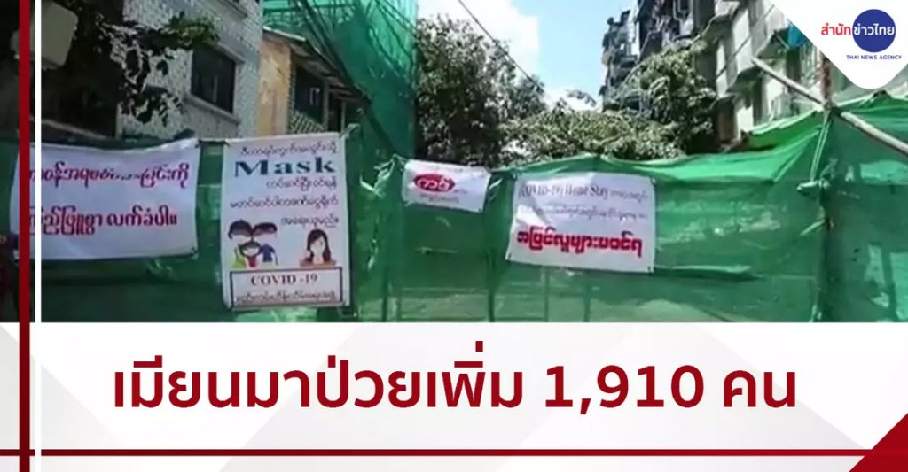 ย่างกุ้ง 12 ต.ค. – เมียนมามีผู้ป่วยติดเชื้อรายใหม่ 1,910 คน และมียอดผู้ป่วยติดเชื้อสะสมทั้งสิ้น 27,974 คนแล้ว