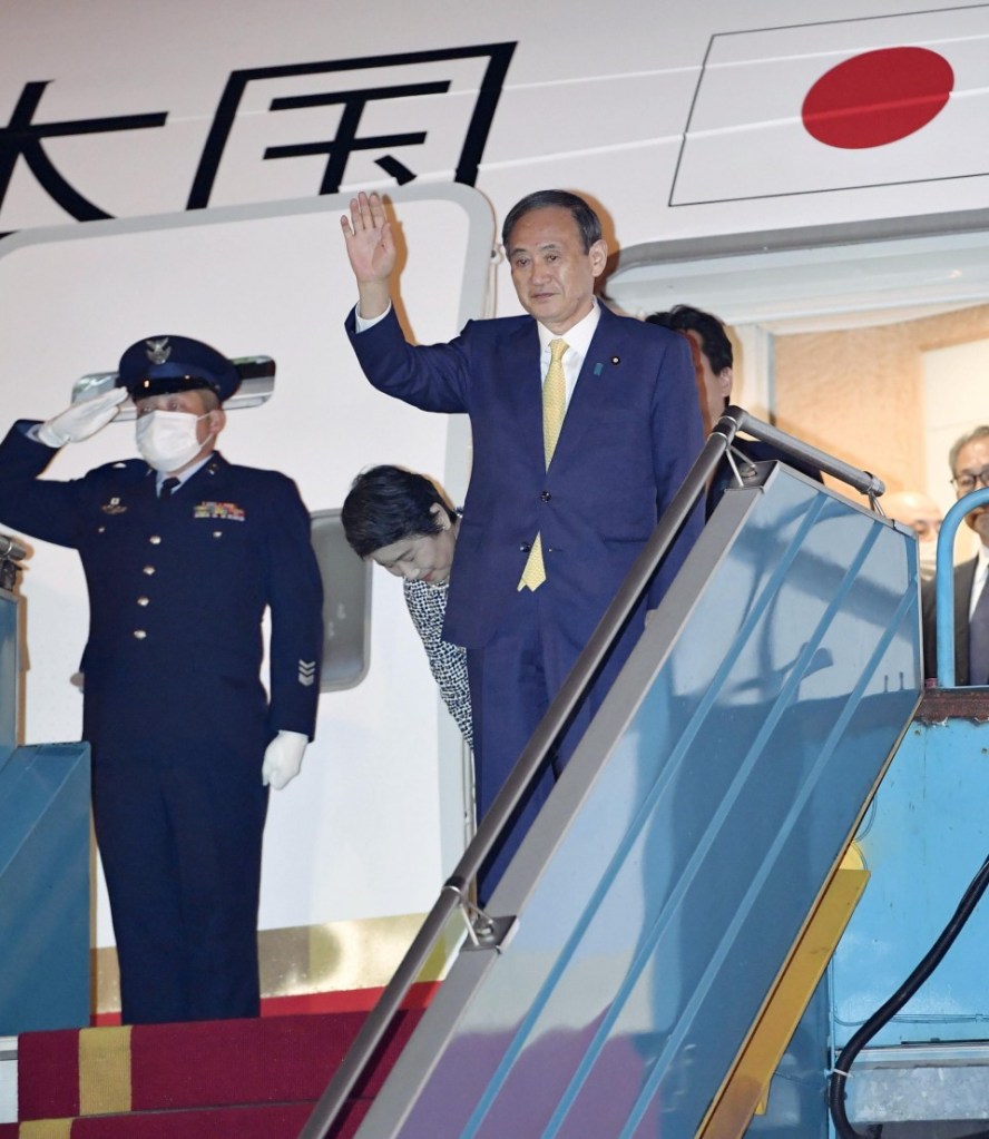 HANOI – Japanese Prime Minister Yoshihide Suga arrived in Hanoi on Sunday on the first leg of a four-day trip to Vietnam and Indonesia in his first foreign travel since taking office, as he looks to bolster ties with Southeast Asian countries.