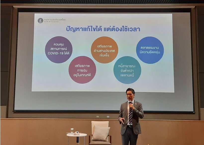 “สิ่งที่เรา concern คือเรื่องของการจัดการ บ้านเราชอบพูดเรื่องนโยบายเยอะ มาตรการเยอะ แต่โจทย์ที่เราเจอ และเป็นปัญหาบ่อยๆ คือเรื่องของการจัดการ ต้องดูสถานการณ์ต่อไป…ความสามารถของเราในการรองรับ shock ต่างๆ เมื่อเทียบกับประเทศอื่นมีอยู่สูง ไม่ว่าจะมิติของเสถียรภาพด้านต่างประเทศ ด้านเสถียรภาพการเงิน แต่ก็ต้องติดตามสถานการณ์อย่างใกล้ชิด”
