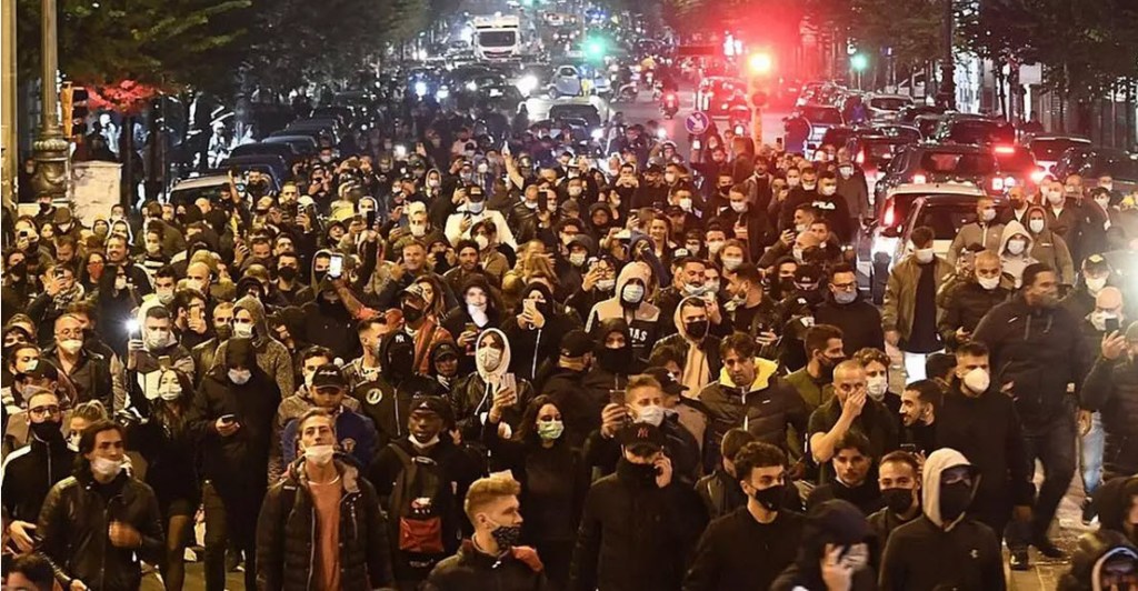 ผู้ประท้วงชักชวนกันผ่านสื่อสังคมออนไลน์ให้ต่อต้านเคอร์ฟิวในแคว้นกัมปาเนีย ฝูงชนที่ส่วนใหญ่เป็นคนหนุ่มสาวเดินไปตามท้องถนนทั่วเมืองเนเปิลส์ เมืองเอกของแคว้น ตะโกนคำขวัญต่อต้านมาตรการเคอร์ฟิวที่เริ่มบังคับใช้ตั้งแต่เวลา 23.00 น.วันศุกร์ตามเวลาท้องถิ่น บางคนจุดระเบิดควันไปด้วย บางคนถือป้ายกระดาษว่า หากปิด ต้องรับผิดชอบ ทางการแคว้นกัมปาเนียเรียกร้องให้เพิ่มความเข้มงวดในการควบคุมโรคโควิด-19 โดยระบุว่า กำลังจะเข้าสู่หายนะแล้ว จำเป็นต้องมีการปิดเมืองหรือล็อกดาวน์ระดับประเทศ เพราะช่วง 24 ชั่วโมงที่ผ่านมาอิตาลีมีผู้ป่วยใหม่เกือบ 20,000 ราย เฉพาะแคว้นกัมปาเนียมีผู้ป่วยใหม่มากเป็นประวัติการณ์ 2,300 คน