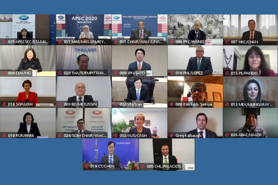 กลุ่มรัฐมนตรีว่าการด้านกิจการวิสาหกิจขนาดกลางและขนาดย่อม (SMEs) ของภูมิภาคเอเปคออกแถลงการณ์ร่วมหลังเสร็จสิ้นการประชุมออนไลน์ที่จัดขึ้นในวันที่ 23 ตุลาคม 2020