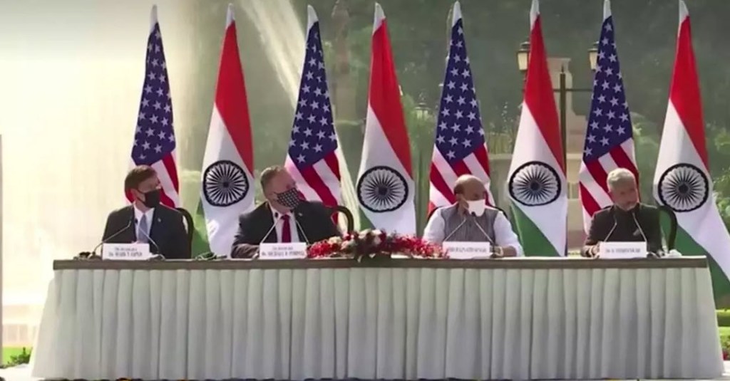 นิวเดลี 28 ต.ค. – สหรัฐและอินเดียลงนามข้อตกลงกระชับความร่วมมือทางทหารให้แน่นแฟ้นยิ่งขึ้น รวมถึงการแบ่งปันข้อมูลที่ละเอียดอ่อน
