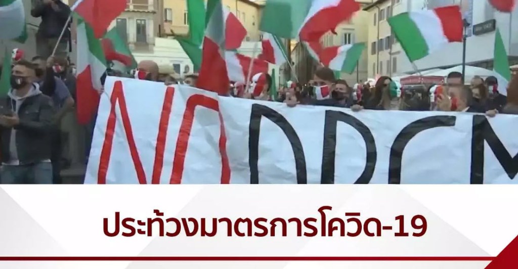 มาตรการใหม่ที่รัฐบาลอิตาลีประกาศใช้ เพื่อรับมือการระบาดรอบใหม่ของโควิด-19 ทำให้เกิดกระแสความไม่พอใจ และกลายเป็นการชุมนุมประท้วงตามเมืองต่างๆ ทั่วประเทศ โดยเฉพาะที่กรุงโรม เมื่อวานนี้ มีการประท้วงขึ้น 2 จุด โดยกลุ่มขบวนการ “หน้ากาก 3 สี” และขบวนการศูนย์รวมสังคม สหภาพแรงงาน กับการเคหะ ตำรวจอิตาลีเข้าสกัด ทำให้เกิดการปะทะกัน มีการขว้างปาขวดน้ำและก้อนหินเข้าใส่ตำรวจ