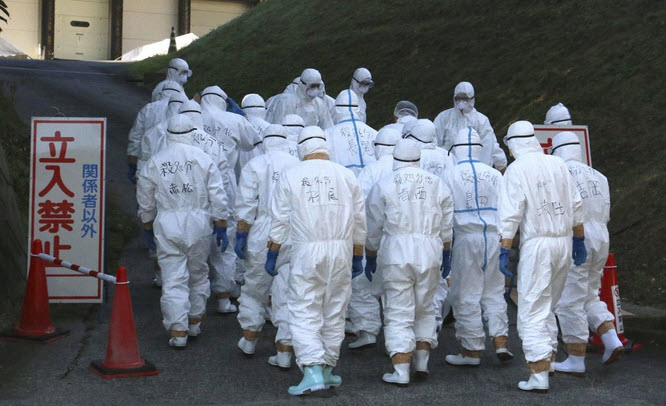 Hiroaki Ando, 59, who runs a farm within the 10-km zone, said, “I can only pray that my chickens have not been infected.”