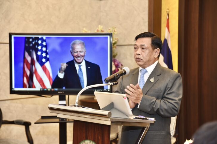วันที่ 11 พ.ย. 2563 นายอลงกรณ์ พลบุตร ที่ปรึกษารัฐมนตรีว่าการกระทรวงเกษตรและสหกรณ์ กล่าวว่า จากที่ผลการเลือกตั้งตำแหน่งประธานาธิบดีสหรัฐฯ ปี 2020 เมื่อวันที่ 3 พฤศจิกายนที่ผ่านมา “โจ ไบเดน” จากพรรคเดโมแครต เป็นฝ่ายชนะการเลือกตั้ง ได้เป็นว่าที่ประธานาธิบดีคนที่ 46 ของสหรัฐฯ ซึ่งมีผลกระทบทั้งมุมโอกาสและปัญหาต่อประเทศไทย ทั้งเชิงบวกและเชิงลบ