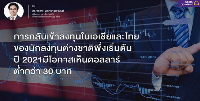 แต่ในปี 2021 เชื่อว่าสกุลเงินเอเชียและเงินบาทจะได้รับแรงหนุนจากการฟื้นตัวของเศรษฐกิจโลกและราคาสินค้าโภคภัณฑ์ ส่งผลให้มีกระแสเงินลงทุนกลับเข้าในฝั่งเอเชียและไทยมากขึ้นกว่าปีนี้ ขณะเดียวกันเงินดอลลาร์ก็มีโอกาสอ่อนค่าจากนโยบายการคลังในสหรัฐที่คาดว่าจะสูงกว่าประเทศอื่น จึงประเมินว่าเงินบาทจะแข็งค่าลงไปแตะระดับ 29.7 บาทต่อดอลลาร์ ภายในปลายปี 2021