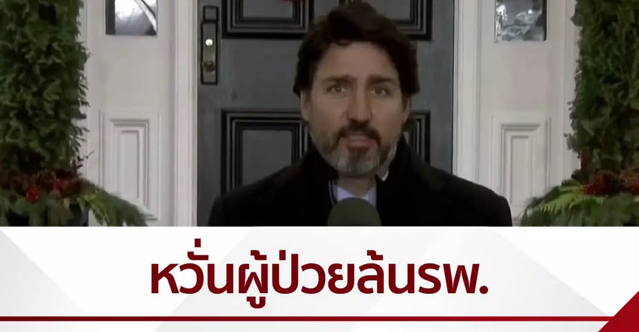 แคนาดา 21 พ.ย.-นายกรัฐมนตรีจัสติน ทรูโด ของแคนาดา เผยจำนวนผู้ติดเชื้อโควิด-19 เพิ่มขึ้นอย่างรวดเร็ว จนอาจถึงภาวะผู้ป่วยล้นโรงพยาบาล วอนประชาชนอยู่บ้านให้มากที่สุด