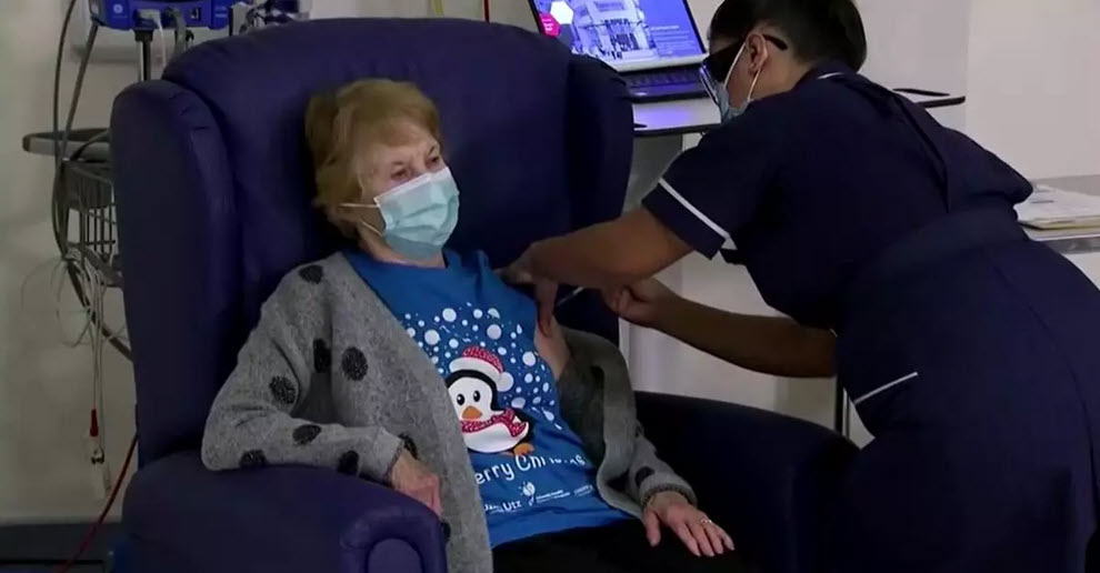 ลอนดอน 8 ธ.ค. – นางมาร์กาเรต คีแนน คุณยายชาวอังกฤษวัย 90 ปีกลายเป็นผู้ที่ได้รับวัคซีนป้องกันโรคติดเชื้อไวรัสโคโรนา 2019 หรือโควิด-19 ของบริษัทไฟเซอร์ที่ได้รับอนุมัติแล้วคนแรกของโลก