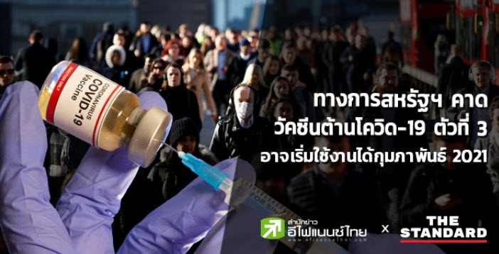 วันนี้ (9 ธันวาคม) โครงการ Operation Warp Speed ของทางการสหรัฐอเมริกา ที่สนับสนุนการทดสอบและพัฒนาวัคซีนต้านโควิด-19 เผยว่า วัคซีนตัวที่ 3 ต่อจาก Pfizer และ Moderna อาจเริ่มใช้งานได้เดือนกุมภาพันธ์ 2021 พร้อมคาดการณ์ว่า วัคซีนต้านโควิด-19 จาก Pfizer และ Moderna นี้จะได้รับการอนุมัติจากองค์การอาหารและยาสหรัฐฯ (FDA) รวมถึงคณะกรรมการที่เกี่ยวข้องภายในเดือนธันวาคมปีนี้