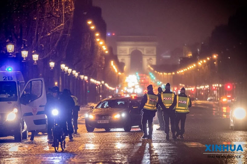 เจ้าหน้าที่ตำรวจฝรั่งเศสได้ออกตั้งจุดตรวจความเรียบร้อยบนท้องถนนยามค่ำคืนในกรุงปารีส เมืองหลวงของฝรั่งเศส หลังจากรัฐบาลประกาศบังคับใช้มาตรการล็อกดาวน์ทั่วประเทศตั้งแต่เมื่อวันเสาร์ที่ผ่านมา