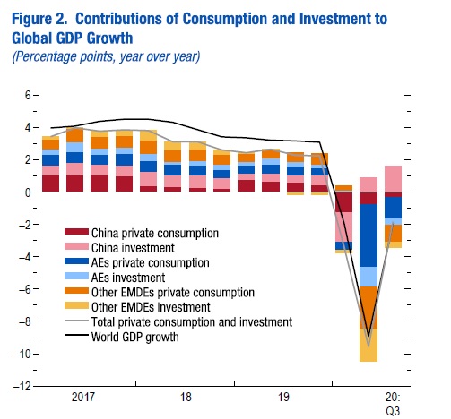 การอนุมัติวัคซีนหลายรายและการเปิดตัวการฉีดวัคซีนในบางประเทศในเดือนธันวาคม ทำให้เกิดความหวังว่าการระบาดจะยุติลงในที่สุด ยิ่งไปกว่านั้นข้อมูลเศรษฐกิจที่ออกมากหลังจากการคาดการณ์ WEO ในเดือนตุลาคมปี 2020 ชี้ให้เห็นว่า ยังเดินหน้าต่ออย่างแข็งแกร่งกว่าที่คาดการณ์ไว้ทั่วทุกภูมิภาคในช่วงครึ่งหลังของปี 2020