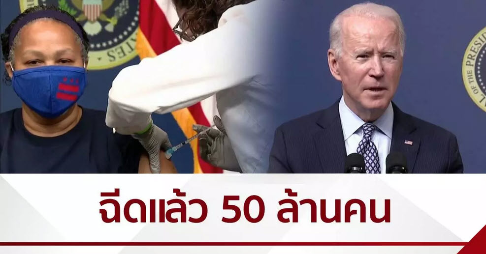 สหรัฐ 26 ก.พ.-ไบเดนมั่นใจฉีดวัคซีนโควิดให้ชาวอเมริกัน ครบ 100 ล้านคน ใน 100 วันแรกของการดำรงตำแหน่ง หลัง 37 วันแรก ฉีดแล้ว 50 ล้านคน