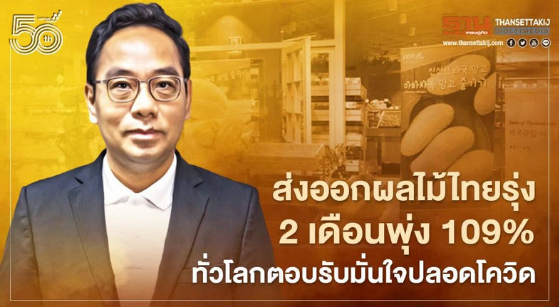พาณิชย์ ปลื้ม ทั่วโลกอ้าแขนตอบรับผลไม้ไทย มั่นใจปลอดภัยจากโควิด ยอดส่งออก 2 เดือนแรก พุ่งไปถึง 240,637 ตัน คิดเป็นมูลค่า 11,708.37 ล้านบาท เพิ่มขึ้นร้อยละ 109.70