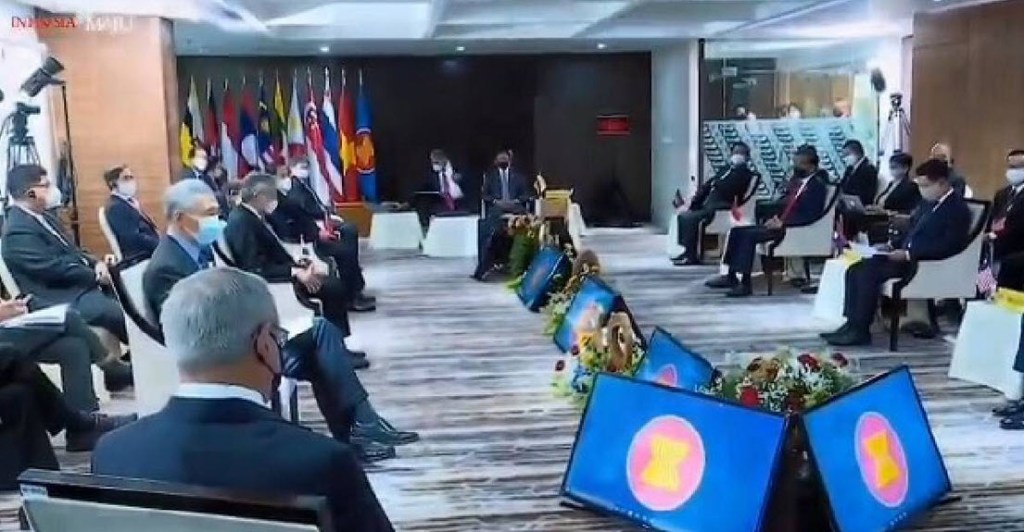 อินโดนีเซีย 25 เม.ย.- การประชุมสุดยอดนัดพิเศษของผู้นำอาเซียนต่อวิกฤตการณ์ความรุนแรงในเมียนมา ที่กรุงจาการ์ตา ประเทศอินโดนีเซีย เมื่อวานนี้ (24 เม.ย.) ที่ประชุมได้บรรลุฉันทามติ 5 ประการต่อปัญหาเมียนมา