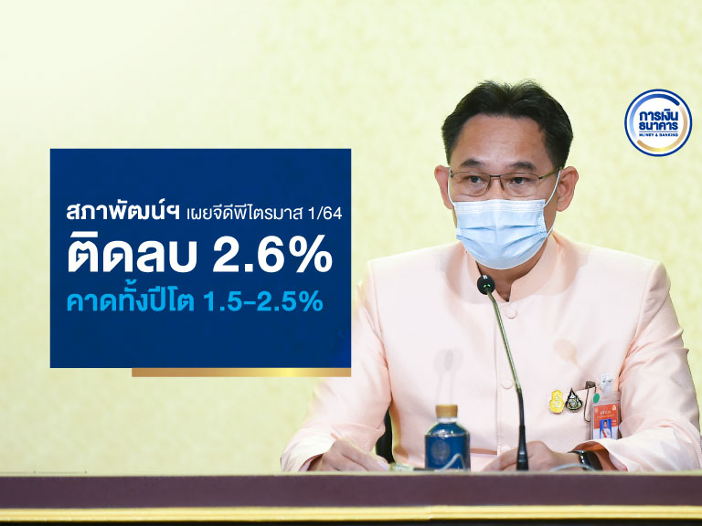 นายดนุชา พิชยนันท์ เลขาธิการสภาพัฒนาการเศรษฐกิจและสังคมแห่งชาติ(สศช.) เปิดเผยว่า เศรษฐกิจไทยในไตรมาสแรกของปี 2564 ลดลง 2.6% ปรับตัวดีขึ้นเมื่อเทียบกับการลดลง 4.2% ในไตรมาสก่อนหน้าและเมื่อปรับผลของฤดูกาลออกแล้ว เศรษฐกิจไทยในไตรมาสแรกของปี 2564 ขยายตัวจากไตรมาสที่สี่ของปี 2563 ที่ 0.2%