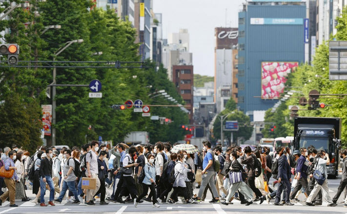 TOKYO – Japan’s economy in the January-March period contracted an annualized real 5.1 percent from the previous quarter, the first shrinkage in three quarters, as a second state of emergency over the coronavirus pandemic dented consumption, government data showed Tuesday.