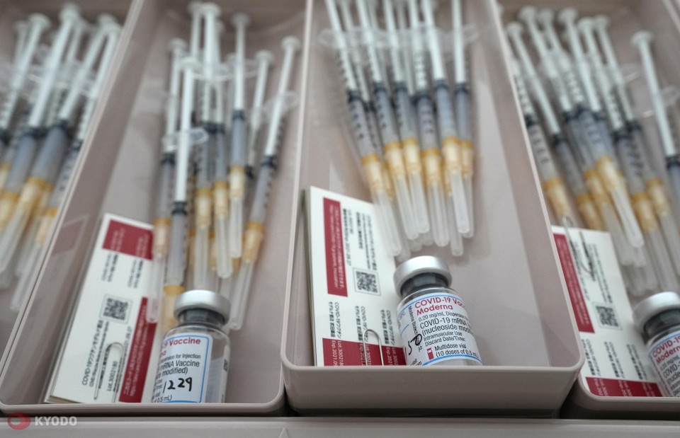 Photo shows syringes and vials for COVID-19 vaccine developed by Moderna Inc. (Kyodo)