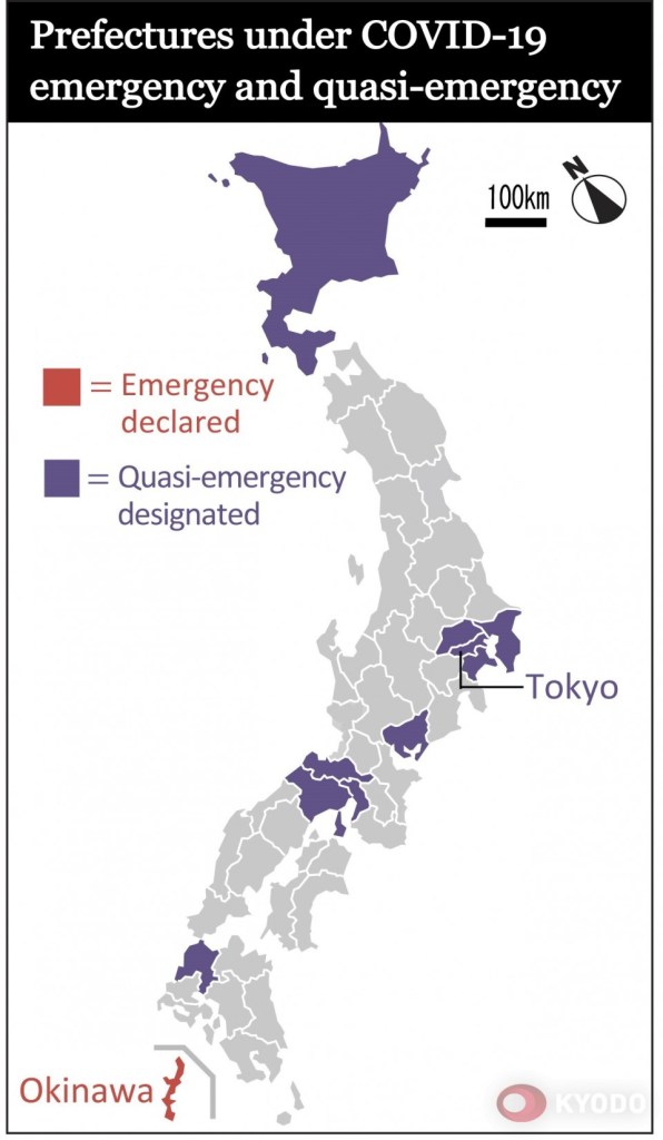 Among the nine prefectures, seven, including the capital, on Monday shifted to a quasi-state of emergency, allowing targeted measures for specific areas rather than entire prefectures.