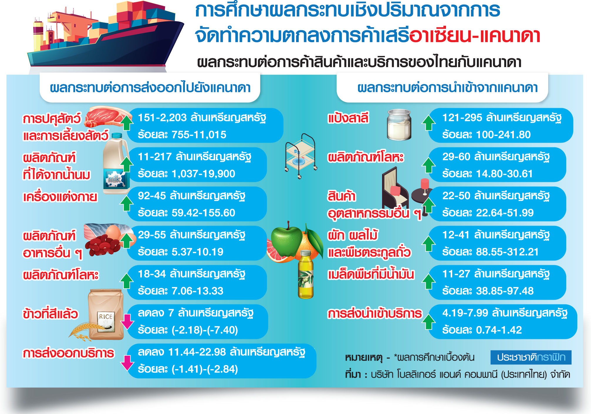 เรื่อง “เปิดประตูอาเซียน-แคนาดา โอกาสการค้า การลงทุน และความร่วมมือ : การค้าสินค้าและสินค้าเกษตร” เมื่อสัปดาห์ที่ผ่านมา ภายใต้โครงการศึกษาโดยบริษัท โบลลิเกอร์ แอนด์ คอมพานี (ประเทศไทย) จำกัด