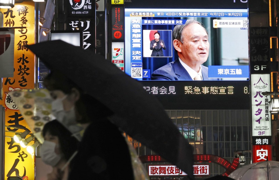 The latest emergency for Tokyo and the extension for Okinawa will take effect from Monday and last until Aug. 22, which would include the duration of the Olympics set to start on July 23. Under a state of emergency, restaurants and bars are banned, in principle, from serving alcohol, while dining establishments not offering alcohol are requested to close early.