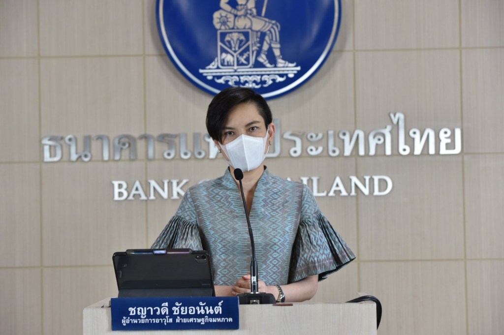 น.ส. ชญาวดี ชัยอนันต์ ผู้อำนวยการอาวุโส ฝ่ายเศรษฐกิจมหภาค ธนาคารแห่งประเทศไทย (ธปท.) เปิดเผยว่า การระบาดของโควิด-19 สายพันธุ์เดลต้ากลายเป็นสายพันธุ์หลักในไทยทำให้การระบาดมีแนวโน้มรุนแรงและยืดเยื้อกว่าคาด วัคซีนมีประสิทธิภาพในการป้องกันการติดเชื้อลดลง ส่งผลให้การบริการจัดการทำได้ยากขึ้น ดังนั้นในระยะข้างหน้าผลกระทบทางเศรษฐกิจขึ้นอยู่สองตัวแปร ได้แก่ ระยะเวลาของการระบาดและผลกระทบของมาตรการที่ใช้ในการควบคุมการระบาด เช่น การล็อกดาวน์ และความเร็วของการกระจายวัคซีนซึ่งจะทำให้คนไทยมีภูมิคุ้มกันหมู่ได้อย่างทั่วถึงและประสิทธิภาพของวัคซีน