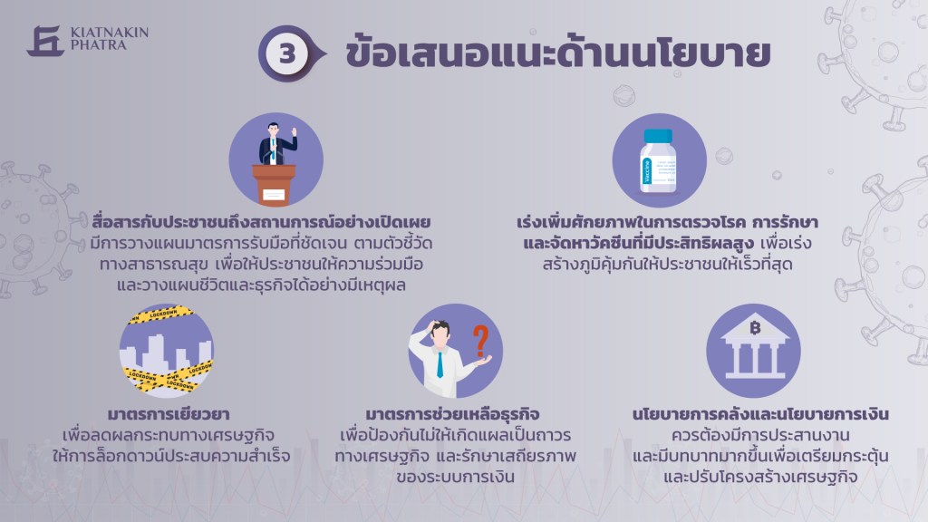 (3) ออกมาตรการเยียวยาและช่วยเหลือที่เพียงพอและเหมาะสมกับสถานการณ์ เพื่อลดผลกระทบและป้องกันไม่ให้เกิดแผลเป็นถาวรทางเศรษฐกิจ
