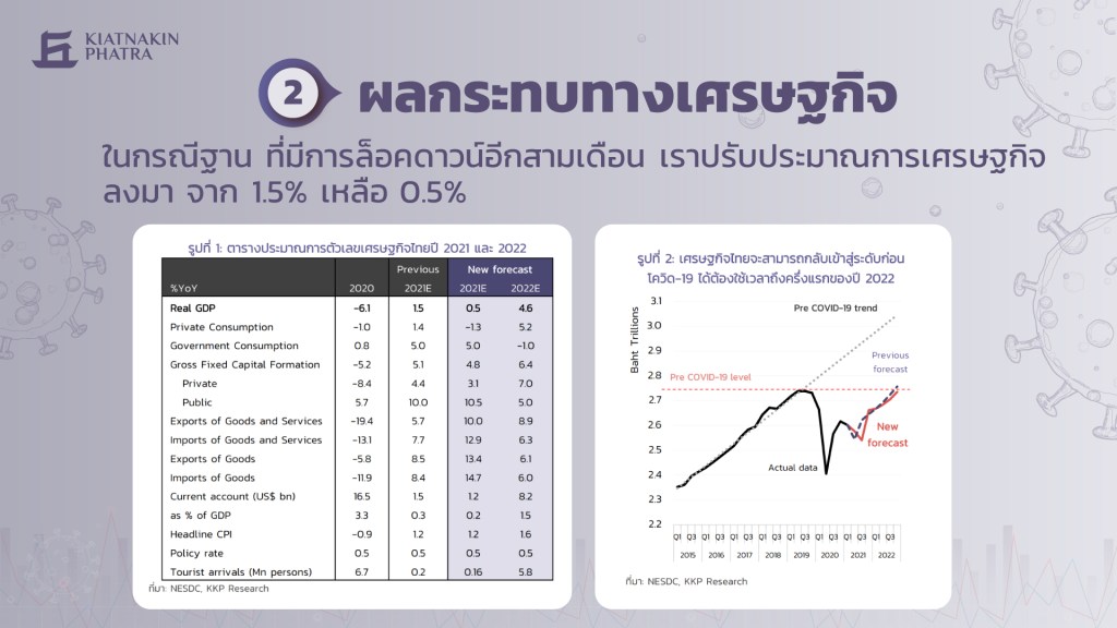 ดร.พิพัฒน์กล่าวว่า จากสถานการณ์การระบาดในขณะนี้ KKP Research ประเมินว่า