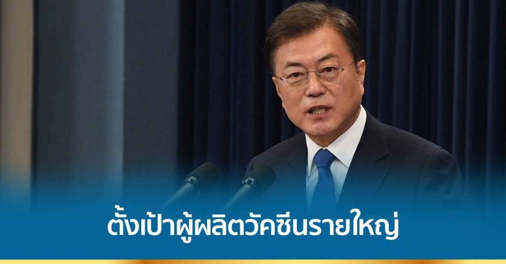 โซล 5 ส.ค. – ประธานาธิบดีมุน แจ-อิน ของเกาหลีใต้ระบุวันนี้ว่า เขาวางแผนใช้เงินลงทุนราว 2.2 ล้านล้านวอน (63,800 ล้านบาท) เพื่อทำให้เกาหลีใต้กลายเป็นหนึ่งในห้าประเทศที่มีฐานการผลิตวัคซีนป้องกันโรคติดเชื้อไวรัสโคโรนา 2019 หรือโควิด-19 รายใหญ่ที่สุดของโลกภายในปี 2568