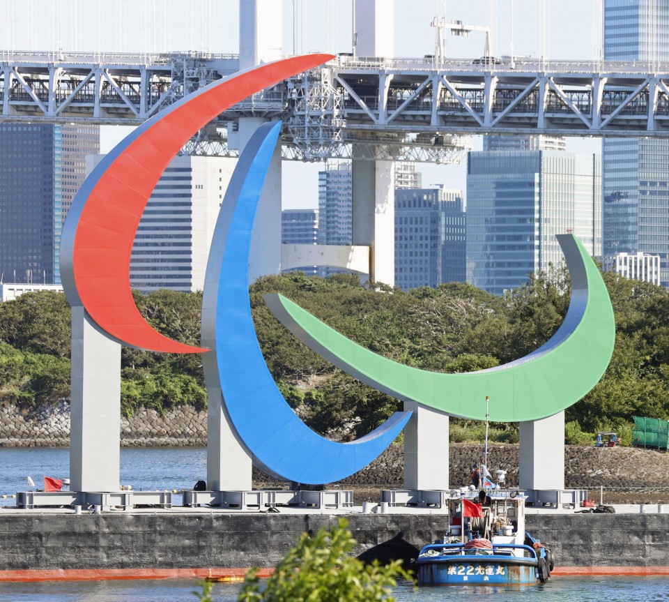 Earlier Friday, the Paralympic logo, consisting of three crescents respectively colored blue, red and green, was set up at Odaiba Marine Park in the Tokyo Bay area.
