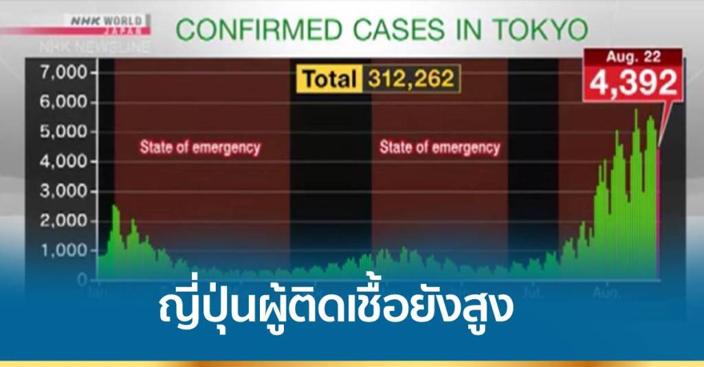สุดสัปดาห์ที่ผ่านมา เป็นสัปดาห์แรกที่ญี่ปุ่นขยายภาวะฉุกเฉินเพื่อต่อสู้กับการแพร่ระบาดของโควิด-19 แต่ไม่มีสัญญาณว่าอัตราการติดเชื้อจะลดลง วันอาทิตย์ที่ผ่านมา กรุงโตเกียวรายงานยอดผู้ติดเชื้อรายใหม่ถึง 4,392 คน ลดลงจากวันเสาร์ 700 คน คิดเป็นอัตราเฉลี่ยเพิ่มขึ้นร้อยละ 11 ในรอบ 7 วัน เจ้าหน้าที่ระบุว่าวานนี้มีผู้เสียชีวิต 8 คนในกรุงโตเกียว และมียังมีผู้ป่วยอาการรุนแรง 271 คน ขณะที่การแข่งขันโตเกียวพาราลิมปิก ซึ่งจะเริ่มขึ้นในวันอังคารนี้ พบผู้เข้าชมการแข่งขันอีก 30 คน มีผลตรวจเป็นบวก ในจำนวนนี้เป็นนักกีฬาจากต่างประเทศ 2 คน.