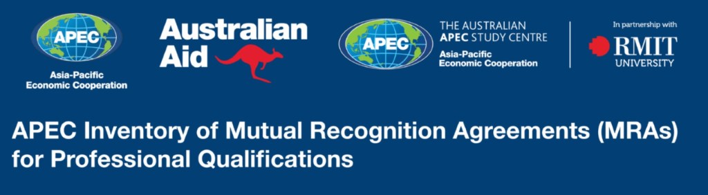 ศูนย์เอเปคศึกษาของออสเตรเลียได้เผยแพร่ฐานข้อมูลและรายการข้อตกลงการยอมรับร่วมกันสำหรับคุณสมบัติทางวิชาชีพของเอเปค (The APEC Inventory of Mutual Recognition Agreements for Professional Qualifications) โดยการสนับสนุนทุนจากรัฐบาลออสเตรเลียและร่วมสนับสนุนโดยสหรัฐอเมริกาและเปรู