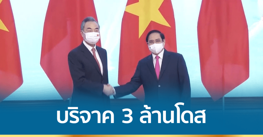เวียดนาม 12 ก.ย.-จีนให้คำมั่นจะบริจาควัคซีนป้องกันโควิด-19 จำนวน 3 ล้านโดส ให้เวียดนาม หลังนายหวัง อี้ รัฐมนตรีว่าการต่างประเทศของจีน เยือนเวียดนามเพื่อกระชับความสัมพันธ์