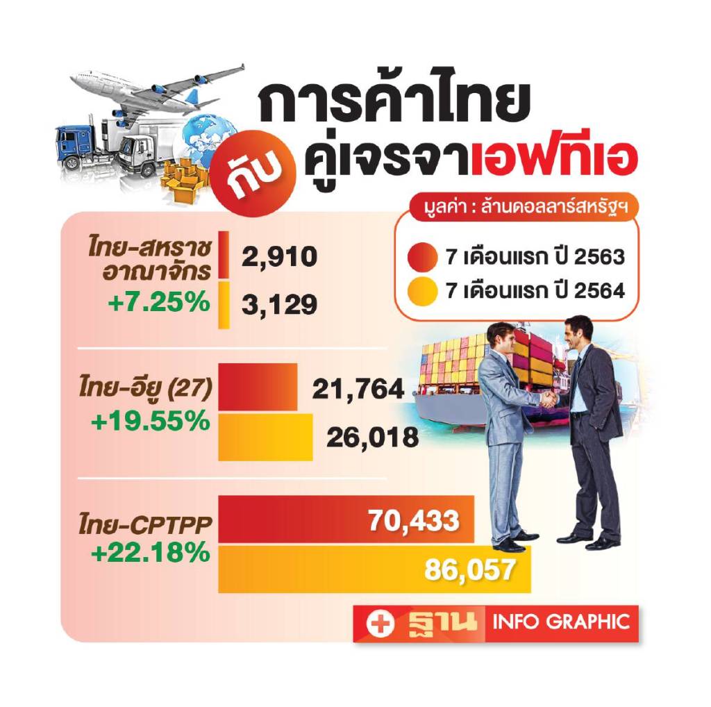 “พาณิชย์” เร่งแผนเจรจาเอฟทีเอไทย-อียู หลัง 2 ฝ่ายเห็นพ้องควรเร่งเจรจา คาดเสนอ ครม.พิจารณาเห็นชอบได้ในปีนี้ ส่วน FTA ไทย-อังกฤษ จัดตั้ง JETCO เปิดเวทีหารือสองฝ่ายแล้ว กำหนดจัดประชุมครั้งแรก Q4 ปีนี้ ขณะ CPTPP กนศ.อยู่ระหว่างศึกษาความเป็นไปได้ยังไม่มีผลสรุป