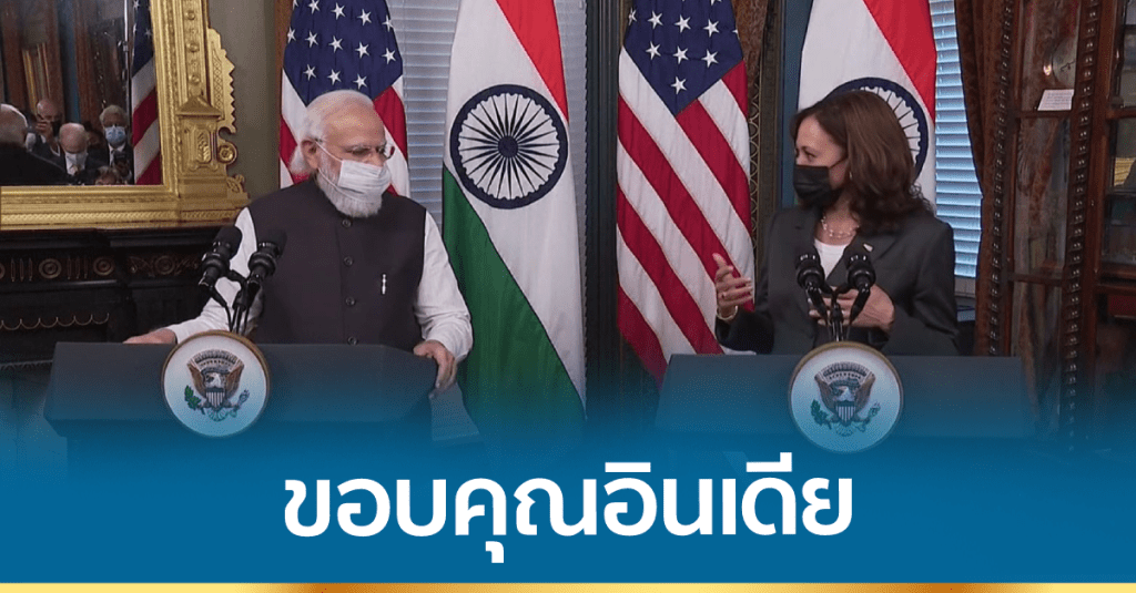 นางกามาลา แฮร์รีส รองประธานาธิบดีสหรัฐ ให้การต้อนรับ นายนาเรนทรา โมดี นายกรัฐมนตรีของอินเดีย ที่อยู่ระหว่างเยือนสหรัฐ 3 วัน พร้อมกล่าวชื่นชมและขอบคุณอินเดีย ที่ตัดสินใจกลับมาส่งออกวัคซีนโควิด ในปลายปีนี้ หลังหยุดชะงักไปเมื่อเดือนเมษายน เพื่อทุ่มการผลิตและฉีดวัคซีนให้คนในอินเดีย และว่าทั้ง 2 ชาติจะร่วมมือกันปกป้องระบอบประชาธิปไตยทั่วโลก