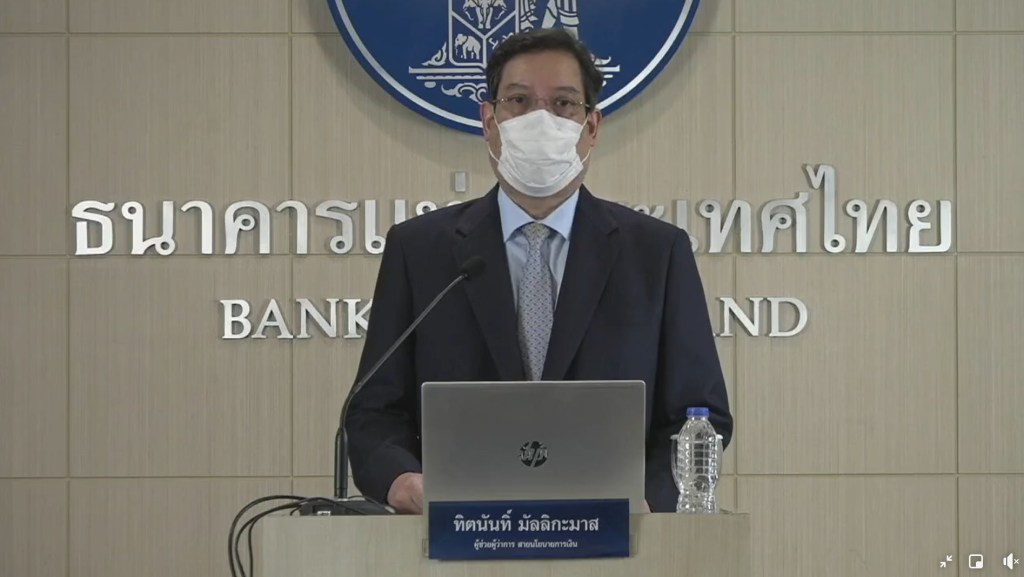 นายทิตนันทิ์ มัลลิกะมาส เลขานุการ คณะกรรมการนโยบายการเงิน (กนง.) แถลงผลการประชุม กนง. ในวันที่ 29 กันยายน 2564