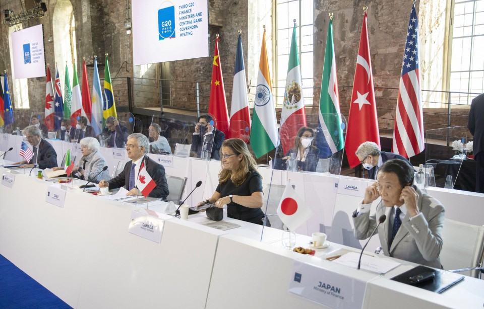 WASHINGTON/TOKYO -Finance chiefs from the Group of 20 major economies on Wednesday endorsed a global minimum corporate tax rate of 15 percent and other new rules to address tax avoidance by IT giants, while vowing to act as necessary over rising inflation rates amid supply disruptions stemming from the coronavirus pandemic.