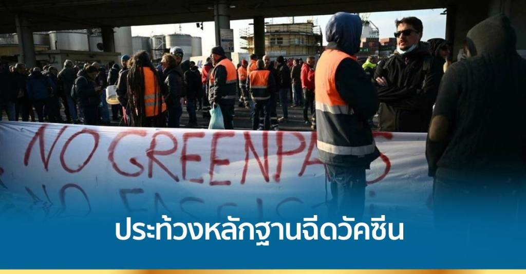 โรม 15 ต.ค. – ชาวอิตาลีหลายร้อยคนชุมนุมประท้วงที่ท่าเรือหลายแห่งในอิตาลีในวันนี้ เพื่อคัดค้านการออกข้อกำหนดใหม่ที่บังคับให้แรงงานทั่วประเทศต้องแสดงหลักฐานรับรองการฉีดวัคซีนป้องกันโรคโควิด-19 หรือเป็นที่รู้จักกันในชื่อ ‘กรีนพาส’ (Green Pass) ที่มีผลบังคับใช้ในวันนี้เป็นวันแรก