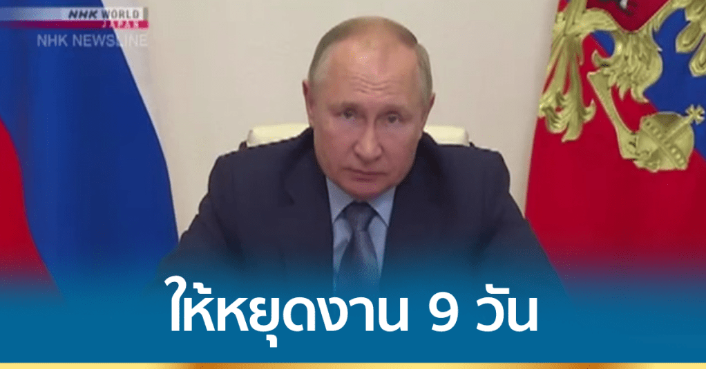 รัสเซีย 21 ต.ค.-ผู้นำรัสเซียให้ประชาชนหยุดงาน 9 วัน โดยยังได้รับค่าจ้าง เพื่อควบคุมการระบาดของโควิด-19 หลังยอดผู้เสียชีวิตพุ่งกว่า 1,000 คน/วัน ขณะที่อังกฤษเตือนยอดติดเชื้ออาจสูงถึงวันละแสน