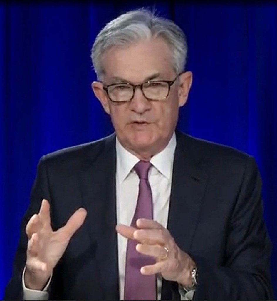 U.S. Federal Reserve Chairman Jerome Powell speaks at an online press conference on Nov. 3, 2021. (Kyodo)