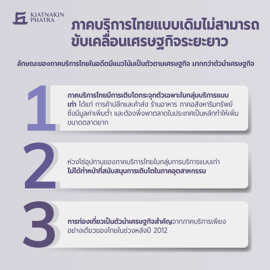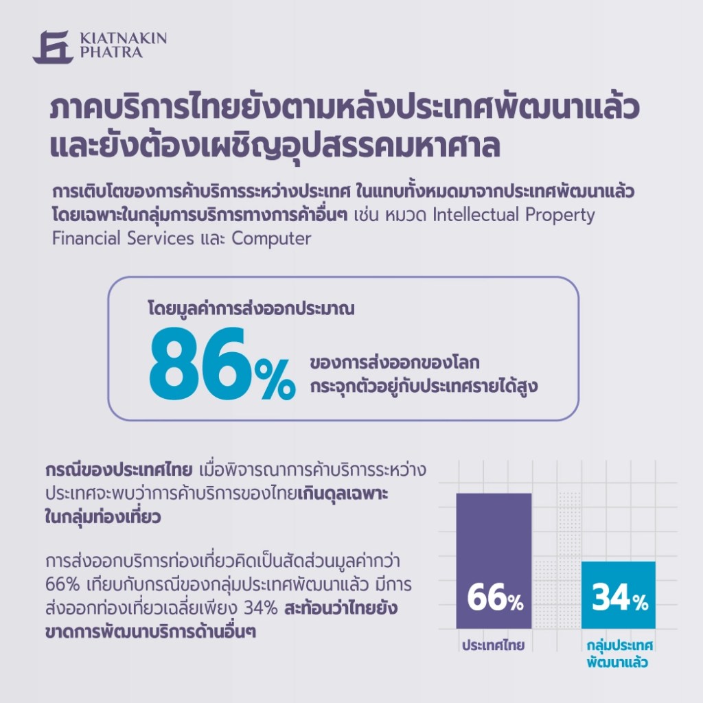 KKP Research ประเมินว่าลักษณะของภาคบริการในประเทศพัฒนาแล้วที่เป็นบริการสมัยใหม่ (Modern Services) สร้างโอกาสสำคัญให้กับการเติบโตของเศรษฐกิจในภาพรวมจากลักษณะสำคัญ 3 ประการ คือ