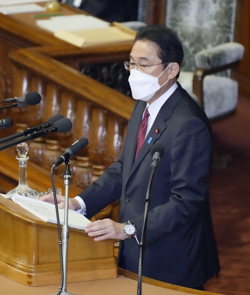 The policy speech was Kishida’s second, and first since he led his Liberal Democratic Party and its junior partner Komeito to victory in the Oct. 31 House of Representatives election. He gave it while looking to create a list of achievements to campaign on ahead of the House of Councillors election scheduled for next summer.