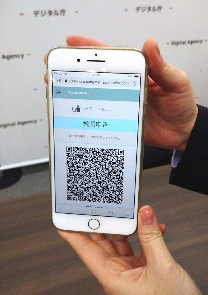 Officials get travelers’ information by scanning a QR code on their smartphones or other devices. The new service is expected to shorten the time of entry procedures.