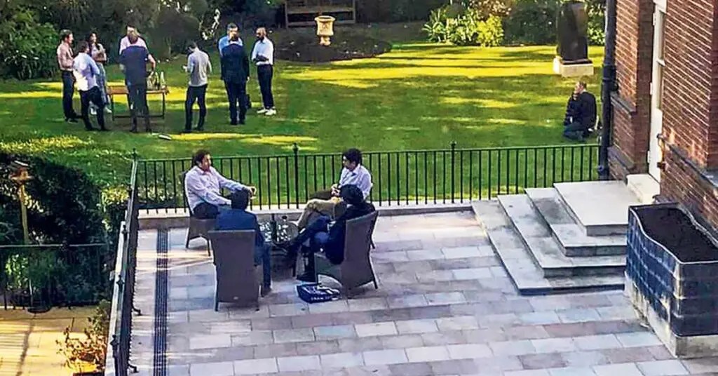 หนังสือพิมพ์เดอะการ์เดียนของอังกฤษตีพิมพ์รูปภาพที่แสดงให้เห็นว่า นายกรัฐมนตรีจอห์นสัน วัย 57 ปี และนางแคร์รี จอห์นสัน ภริยา วัย 33 ปี ซึ่งกำลังอุ้มบุตรชายวัยแรกเกิด นั่งร่วมโต๊ะกับบุคคลอื่นอีก 2 คนภายในสวนของสำนักนายกรัฐมนตรี โดยที่บนโต๊ะมีขวดไวน์และชีสที่เป็นเครื่องเคียง ส่วนโต๊ะที่ตั้งอยู่ห่างออกไปไม่ไกลนักมีผู้นั่งอยู่ 4 คน และมีอีกโต๊ะใกล้กันเป็นกลุ่มคนยืนถือแก้วไวน์ล้อมรอบโต๊ะที่มีขวดไวน์วางอยู่