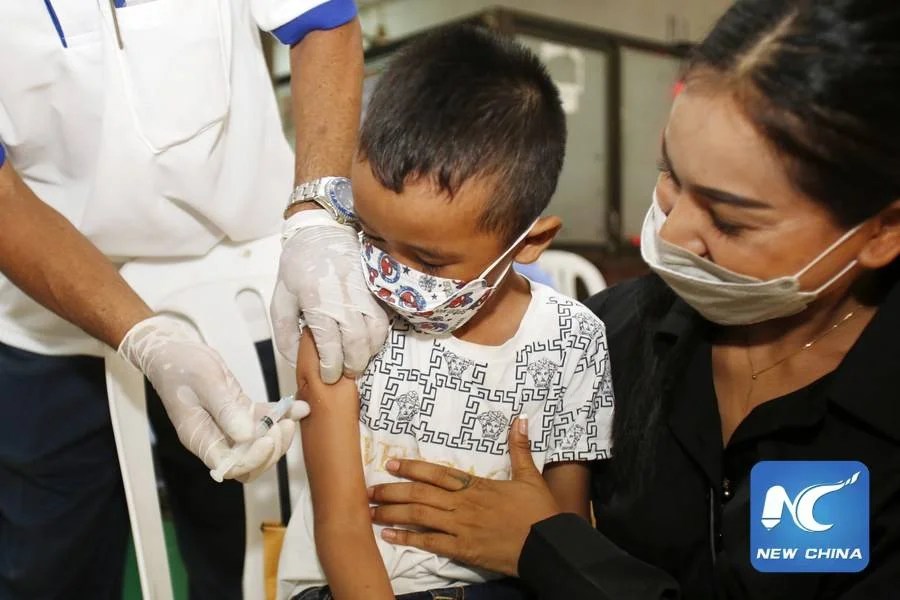 ทั้งนี้ กัมพูชาฉีดวัคซีนป้องกันโรคโควิด-19 อย่างน้อยหนึ่งโดสให้ประชาชนอายุ 5 ปีขึ้นไป 14.38 ล้านคน หรือ 89.9% จากประชากรทั้งหมด 16 ล้านคน ขณะอีก 13.8 ล้านคน หรือ 86.3% ฉีดวัคซีนครบสองโดสแล้ว โดยกัมพูชาใช้วัคซีนของซิโนแวคและซิโนฟาร์มจากจีนเป็นส่วนใหญ่
