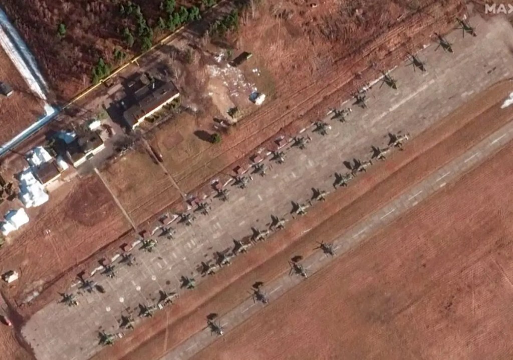 “แม็กซา เทคโนโลยี” รายงานว่า ทางตะวันตกเฉียงเหนือของเบลารุส มีเฮลิคอปเตอร์ของรัสเซียอย่างน้อย 50 ลำ รถถัง ยานเกราะลำเลียงพล และอาวุธยุทโธปกรณ์จำนวนมาก ซึ่งทั้งหมดล้วนอยู่ห่างจากพรมแดนยูเครนไม่ถึง 16 กิโลเมตร.