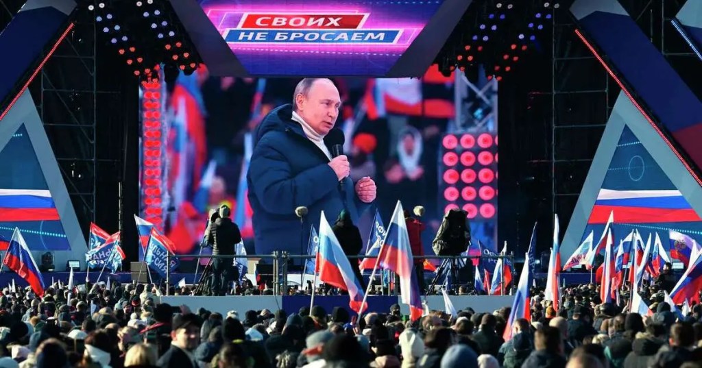 มอสโก 19 มี.ค.- ประธานาธิบดีวลาดิเมียร์ ปูตินของรัสเซียยกย่องทหารรัสเซียที่กำลังสู้รบในยูเครน ระหว่างปราศรัยต่อประชาชนที่เนืองแน่นอยู่ที่สนามกีฬาในกรุงมอสโกเมื่อวานนี้