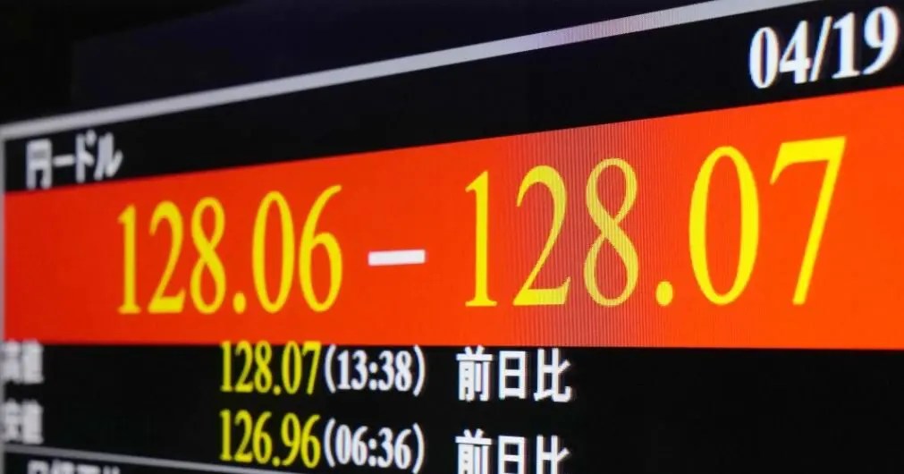 โตเกียว 19 เม.ย.- เงินเยนของญี่ปุ่นเมื่อเทียบกับเงินดอลลาร์สหรัฐทำสถิติอ่อนค่าที่สุดในรอบ 20 ปีครั้งใหม่ในวันนี้ โดยหลุดแนวรับที่ 128 เยนต่อดอลลาร์สหรัฐ เนื่องจากตลาดคาดว่าธนาคารกลางของสองประเทศจะมีนโยบายทางการเงินที่ห่างกันออกไปทุกที